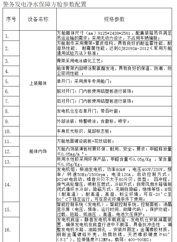 警務發電凈水保障方艙