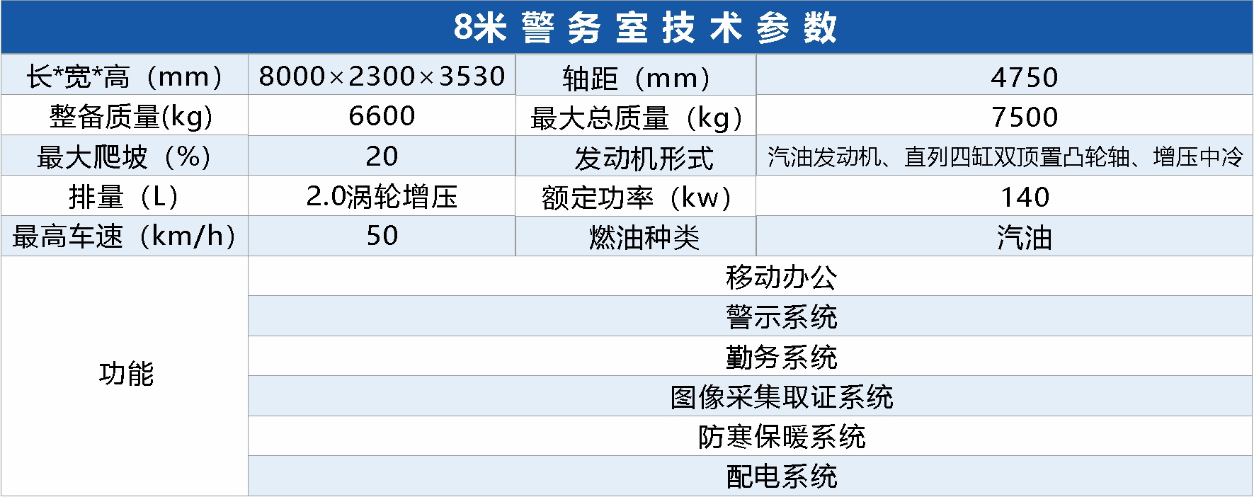 整車分為辦公區(qū)、休息區(qū)、拓展艙區(qū)。辦公區(qū)有智能化警務(wù)辦公指揮系統(tǒng)和智能監(jiān)控系統(tǒng),可遠程調(diào)度指揮。休息區(qū)有上下四個床鋪,中間有儲物柜。拓展艙分為手動、電動兩款,可加大內(nèi)部辦公空間,實現(xiàn)車內(nèi)辦公、遠程視頻會議等功能。